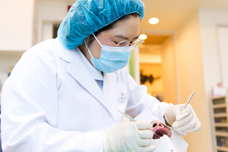 患者さまによっては口の中の状態を見るのが嫌な方もいらっしゃいます。そのような方には画像を見せる前に「お見せしましょうか?」と確認したり、治療時間が長くなる時は「少しやすみませんか?」と声を掛け、お手洗いの時間を設けるなどの配慮も忘れません。